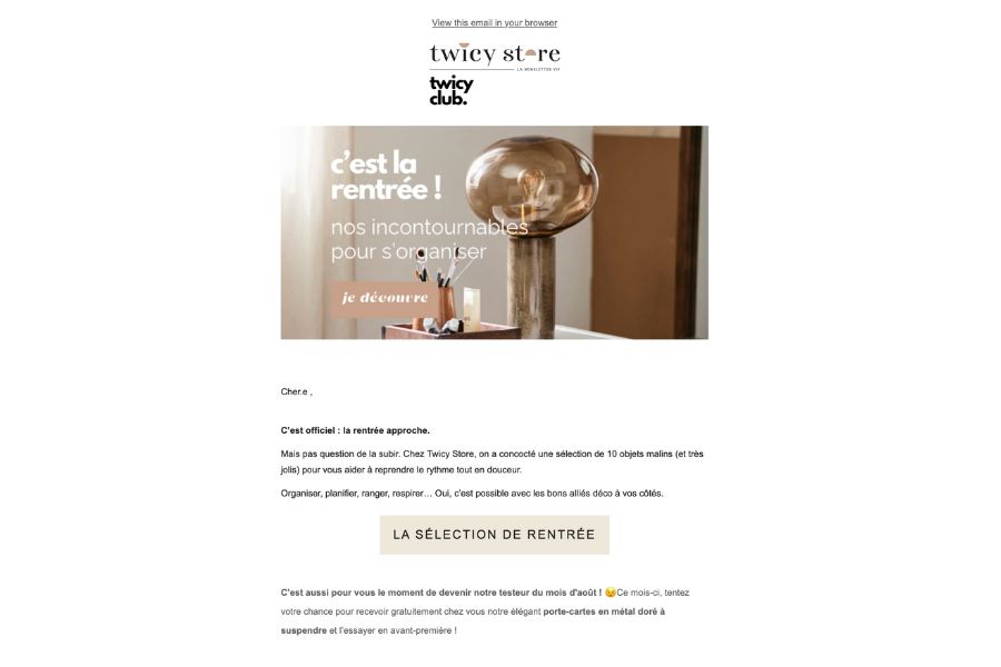 Jusqu’ici, la newsletter Twicy Store était envoyée de façon ponctuelle, sans vraie ligne directrice.